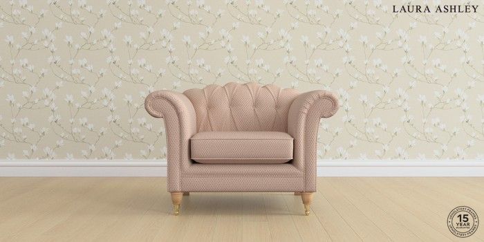 6.12.1 Buy Gloucester Button Back by Laura Ashley Armchair Melbreak Geo Chalk Pink Low Brass Castor - Light Oak from the Laura Ashley online shop Click here to use our website with more accessibility support, for example screen readers