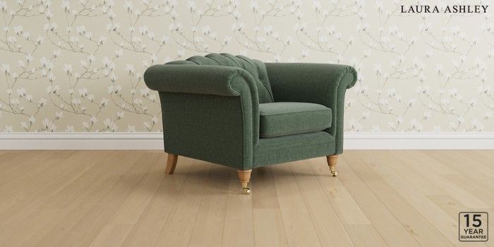 6.12.1 Buy Gloucester Button Back by Laura Ashley Armchair Nantmor Fern Green Low Brass Castor - Light Oak from the Laura Ashley online shop Click here to use our website with more accessibility support, for example screen readers