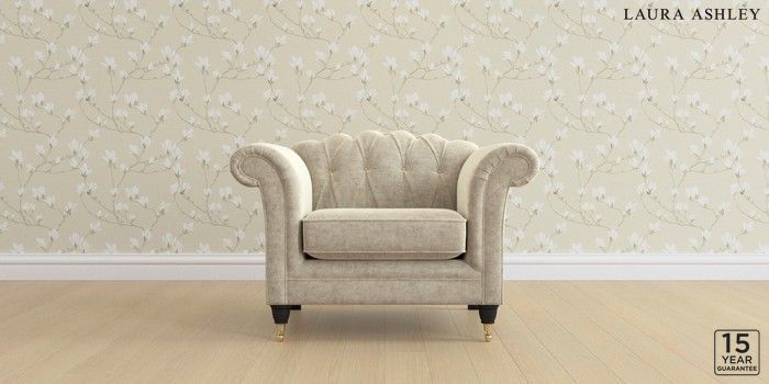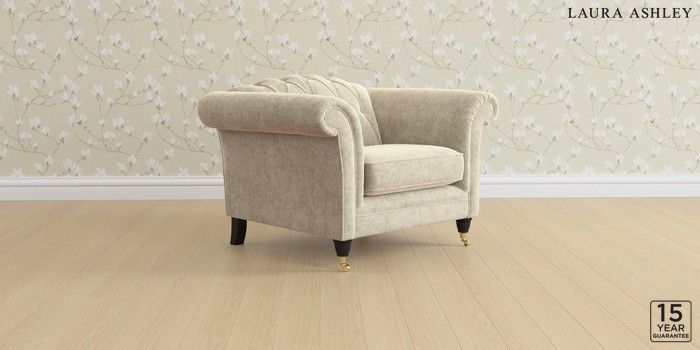 6.12.1 Buy Gloucester Button Back by Laura Ashley Armchair Nantmor Truffle Natural Low Brass Castor - Black from the Laura Ashley online shop Click here to use our website with more accessibility support, for example screen readers