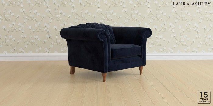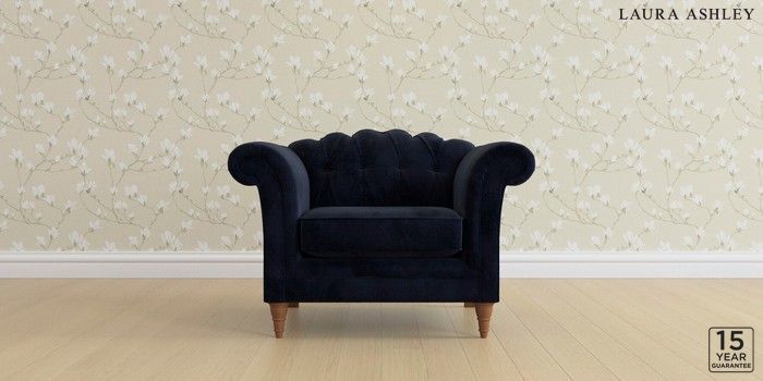 6.12.13 Buy Gloucester Button Back by Laura Ashley Armchair Orla Midnight Navy Low Turned - Teak from the Laura Ashley online shop Click here to use our website with more accessibility support, for example screen readers