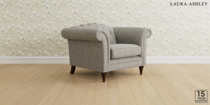 6.12.1 Buy Gloucester Button Back by Laura Ashley Armchair Orla Pale Steel Grey Low Turned - Chestnut from the Laura Ashley online shop Click here to use our website with more accessibility support, for example screen readers