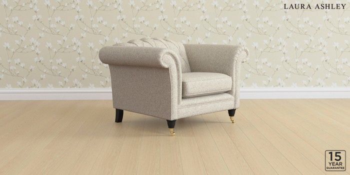 6.12.13 Buy Gloucester Button Back by Laura Ashley Armchair Tichwell Stone Natural Low Brass Castor - Black from the Laura Ashley online shop Click here to use our website with more accessibility support, for example screen readers