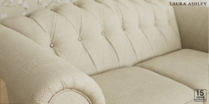6.12.1 Buy Gloucester Button Back by Laura Ashley 2 Seater Small Sofa Anneliese Natural Low Chrome Castor - Black from the Laura Ashley online shop Click here to use our website with more accessibility support, for example screen readers