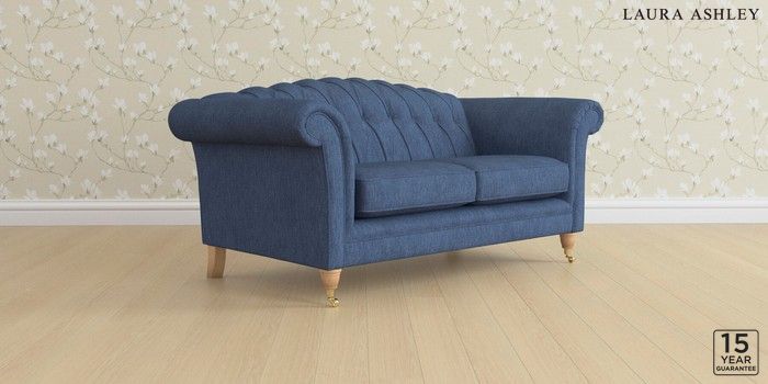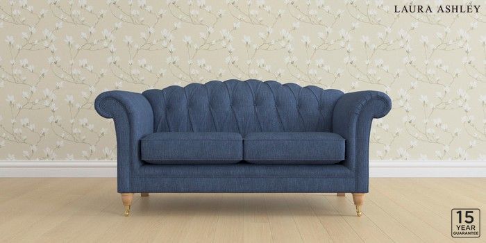6.12.13 Buy Gloucester Button Back by Laura Ashley 2 Seater Sofa Bainton Midnight Navy Low Brass Castor - Light Oak from the Laura Ashley online shop Click here to use our website with more accessibility support, for example screen readers