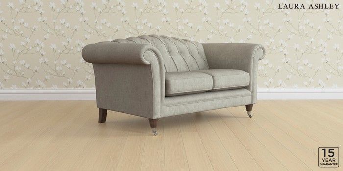 6.12.1 Buy Gloucester Button Back by Laura Ashley 2 Seater Small Sofa Bainton Pale Steel Grey Low Chrome Castor - Chestnut from the Laura Ashley online shop Click here to use our website with more accessibility support, for example screen readers