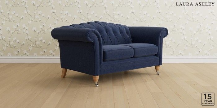 6.12.1 Buy Gloucester Button Back by Laura Ashley 2 Seater Small Sofa Nantmor Midnight Navy Low Chrome Castor - Light Oak from the Laura Ashley online shop Click here to use our website with more accessibility support, for example screen readers