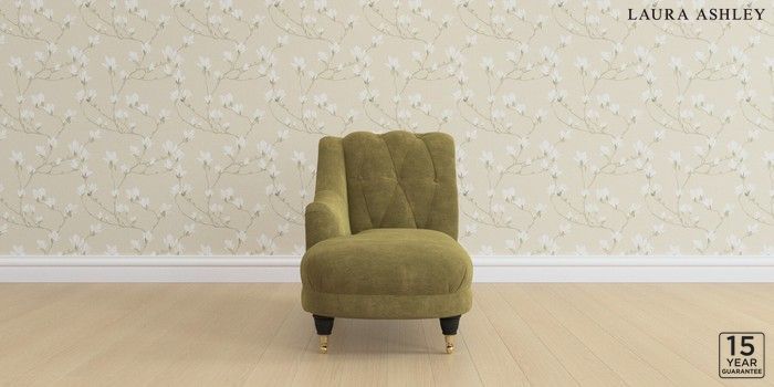 6.12.1 Buy Gloucester Button Back by Laura Ashley Chaise Longue Left Hand Alwyn Velvet Olive Green Low Brass Castor - Black from the Laura Ashley online shop Click here to use our website with more accessibility support, for example screen readers