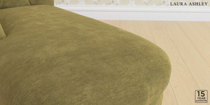 6.12.1 Buy Gloucester Button Back by Laura Ashley Chaise Longue Left Hand Alwyn Velvet Olive Green Low Chrome Castor - Light Oak from the Laura Ashley online shop Click here to use our website with more accessibility support, for example screen readers