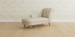 6.12.1 Buy Gloucester Button Back by Laura Ashley Chaise Longue Left Hand Bainton Natural Low Chrome Castor - Light Oak from the Laura Ashley online shop Click here to use our website with more accessibility support, for example screen readers