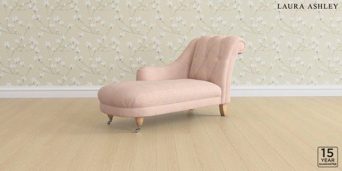 6.12.1 Buy Gloucester Button Back by Laura Ashley Chaise Longue Left Hand Edwin Chenille Blush Pink Low Chrome Castor - Light Oak from the Laura Ashley online shop Click here to use our website with more accessibility support, for example screen readers
