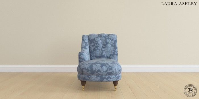 6.12.1 Buy Gloucester Button Back by Laura Ashley Chaise Longue Left Hand Tamara Dusky Seaspray Blue Low Brass Castor - Chestnut from the Laura Ashley online shop Click here to use our website with more accessibility support, for example screen readers