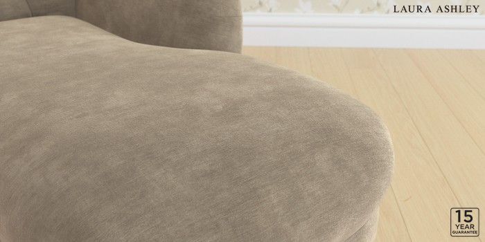 7.0.3 Buy Gloucester Button Back by Laura Ashley Chaise Longue Right Hand Alwyn Velvet Truffle Natural Low Chrome Castor - Teak from the Laura Ashley online shop Click here to use our website with more accessibility support, for example screen readers