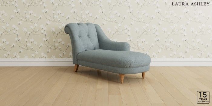 6.12.1 Buy Gloucester Button Back by Laura Ashley Chaise Longue Right Hand Anneliese Seaspray Blue Low Turned - Light Oak from the Laura Ashley online shop Click here to use our website with more accessibility support, for example screen readers