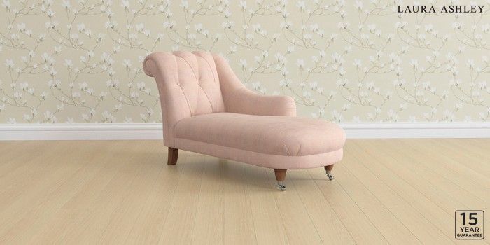 6.12.1 Buy Gloucester Button Back by Laura Ashley Chaise Longue Right Hand Edwin Chenille Blush Pink Low Chrome Castor - Teak from the Laura Ashley online shop Click here to use our website with more accessibility support, for example screen readers