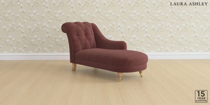 6.12.13 Buy Gloucester Button Back by Laura Ashley Chaise Longue Right Hand Edwin Chenille Burgundy Red Low Brass Castor - Light Oak from the Laura Ashley online shop Click here to use our website with more accessibility support, for example screen readers