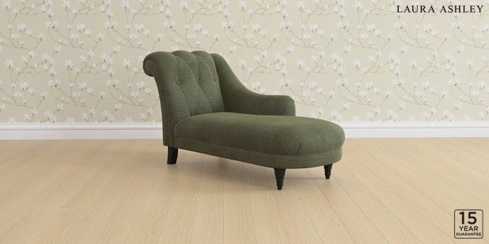 6.12.1 Buy Gloucester Button Back by Laura Ashley Chaise Longue Right Hand Edwin Chenille Hedgerow Green Low Turned - Black from the Laura Ashley online shop Click here to use our website with more accessibility support, for example screen readers