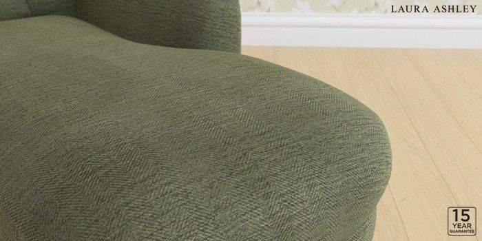 6.12.1 Buy Gloucester Button Back by Laura Ashley Chaise Longue Right Hand Edwin Chenille Hedgerow Green Low Turned - Light Oak from the Laura Ashley online shop Click here to use our website with more accessibility support, for example screen readers