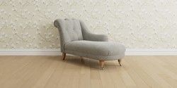 6.12.1 Buy Gloucester Button Back by Laura Ashley Chaise Longue Right Hand Edwin Chenille Silver Grey Low Chrome Castor - Light Oak from the Laura Ashley online shop Click here to use our website with more accessibility support, for example screen readers