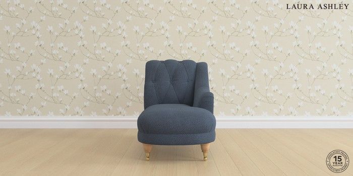 6.12.1 Buy Gloucester Button Back by Laura Ashley Chaise Longue Right Hand Lundar Chenille Navy Blue Low Brass Castor - Light Oak from the Laura Ashley online shop Click here to use our website with more accessibility support, for example screen readers