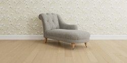 6.12.1 Buy Gloucester Button Back by Laura Ashley Chaise Longue Right Hand Orla Pale Steel Grey Low Chrome Castor - Light Oak from the Laura Ashley online shop Click here to use our website with more accessibility support, for example screen readers