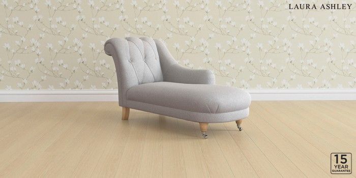 6.12.1 Buy Gloucester Button Back by Laura Ashley Chaise Longue Right Hand Wooton Pale Steel Grey Low Chrome Castor - Light Oak from the Laura Ashley online shop Click here to use our website with more accessibility support, for example screen readers