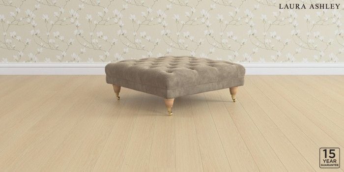 6.12.13 Buy Gloucester Button Back by Laura Ashley Extra Large Footstool Alwyn Velvet Truffle Natural Low Brass Castor - Light Oak from the Laura Ashley online shop Click here to use our website with more accessibility support, for example screen readers