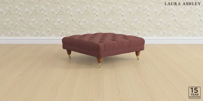 6.12.13 Buy Gloucester Button Back by Laura Ashley Extra Large Footstool Edwin Chenille Burgundy Red Low Brass Castor - Teak from the Laura Ashley online shop Click here to use our website with more accessibility support, for example screen readers