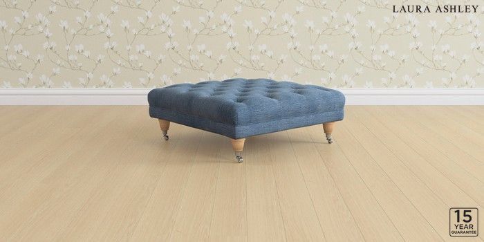 6.12.1 Buy Gloucester Button Back by Laura Ashley Extra Large Footstool Edwin Chenille Seaspray Blue Low Chrome Castor - Light Oak from the Laura Ashley online shop Click here to use our website with more accessibility support, for example screen readers