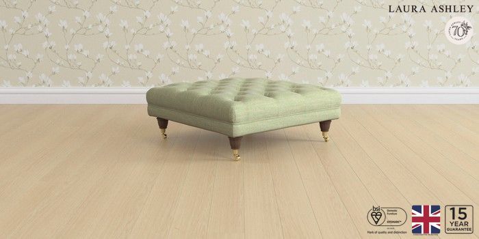 6.12.1 Buy Gloucester Button Back by Laura Ashley Extra Large Footstool Kinsham Hedgerow Green Low Brass Castor - Chestnut from the Laura Ashley online shop Click here to use our website with more accessibility support, for example screen readers
