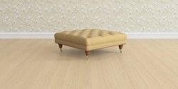 6.12.1 Buy Gloucester Button Back by Laura Ashley Extra Large Footstool Kinsham Ochre Yellow Low Brass Castor - Teak from the Laura Ashley online shop Click here to use our website with more accessibility support, for example screen readers