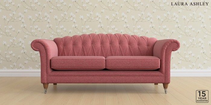 6.12.1 Buy Gloucester Button Back by Laura Ashley 3 Seater Sofa Anneliese Rosewood Red Low Chrome Castor - Teak from the Laura Ashley online shop Click here to use our website with more accessibility support, for example screen readers