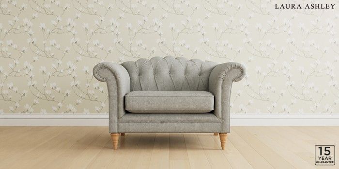 6.12.1 Buy Gloucester Button Back by Laura Ashley Snuggle Anneliese Steel Grey Low Turned - Light Oak from the Laura Ashley online shop Click here to use our website with more accessibility support, for example screen readers