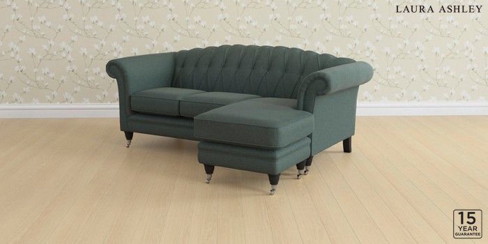 6.12.1 Buy Gloucester Button Back by Laura Ashley Medium Sofa Chaise - Universal Wooton Forest Green Low Chrome Castor - Black from the Laura Ashley online shop Click here to use our website with more accessibility support, for example screen readers