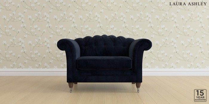 6.12.1 Buy Gloucester Button Back by Laura Ashley Snuggle Orla Midnight Navy Low Chrome Castor - Chestnut from the Laura Ashley online shop Click here to use our website with more accessibility support, for example screen readers