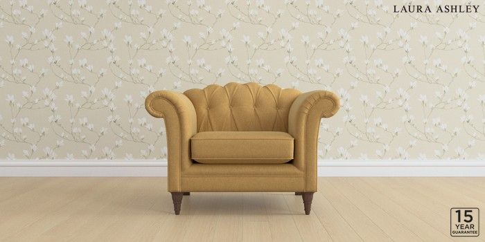 6.12.13 Buy Gloucester Button Back by Laura Ashley Armchair Peyton Ochre Yellow Low Turned - Chestnut from the Laura Ashley online shop Click here to use our website with more accessibility support, for example screen readers