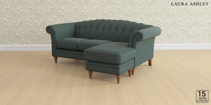 6.12.1 Buy Gloucester Button Back by Laura Ashley Medium Sofa Chaise - Universal Wooton Forest Green Low Turned - Teak from the Laura Ashley online shop Click here to use our website with more accessibility support, for example screen readers