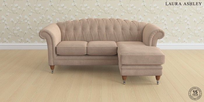 6.12.1 Buy Gloucester Button Back by Laura Ashley Medium Sofa Chaise - Universal Ailsworth Mink Natural Low Chrome Castor - Teak from the Laura Ashley online shop Click here to use our website with more accessibility support, for example screen readers