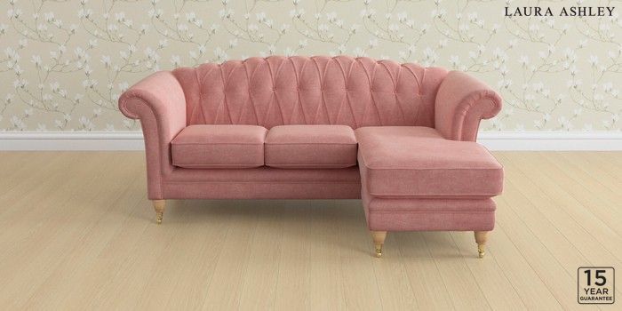 6.12.13 Buy Gloucester Button Back by Laura Ashley Medium Sofa Chaise - Universal Bainton Old Rose Pink Low Brass Castor - Light Oak from the Laura Ashley online shop Click here to use our website with more accessibility support, for example screen readers