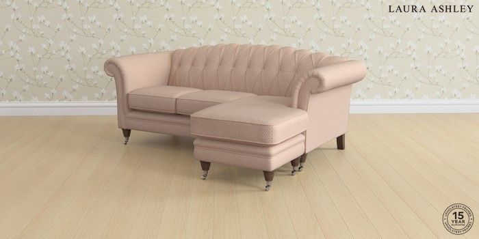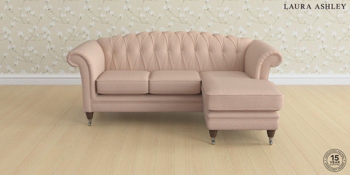 6.12.1 Buy Gloucester Button Back by Laura Ashley Medium Sofa Chaise - Universal Melbreak Geo Chalk Pink Low Chrome Castor - Chestnut from the Laura Ashley online shop Click here to use our website with more accessibility support, for example screen readers