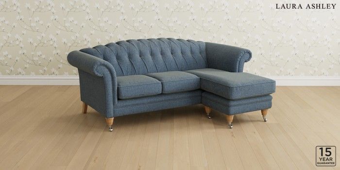 6.12.13 Buy Gloucester Button Back by Laura Ashley Medium Sofa Chaise - Universal Orla Seaspray Blue Low Chrome Castor - Light Oak from the Laura Ashley online shop Click here to use our website with more accessibility support, for example screen readers