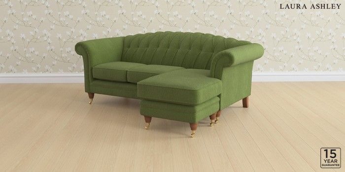 6.12.1 Buy Gloucester Button Back by Laura Ashley Medium Sofa Chaise - Universal Tichwell Olive Green Low Brass Castor - Teak from the Laura Ashley online shop Click here to use our website with more accessibility support, for example screen readers