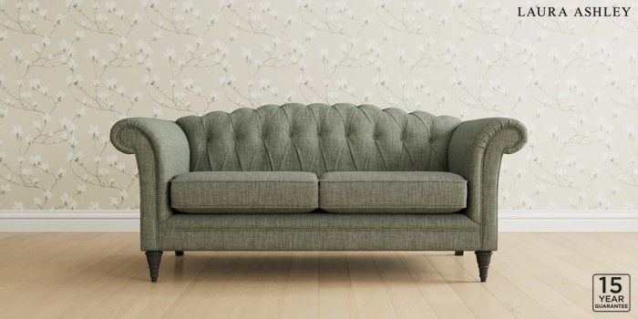 6.12.1 Buy Gloucester Button Back by Laura Ashley 3 Seater Small Sofa Bainton Sage Green Low Turned - Black from the Laura Ashley online shop Click here to use our website with more accessibility support, for example screen readers