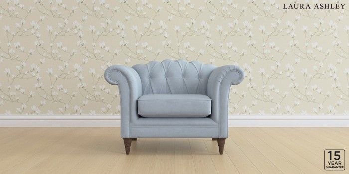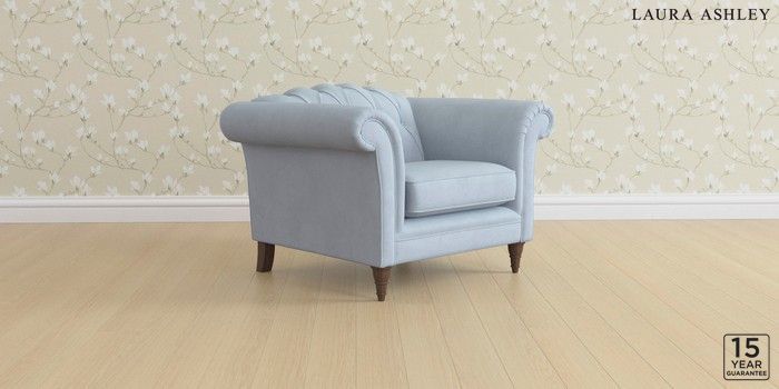 6.12.1 Buy Gloucester Button Back by Laura Ashley Armchair Ailsworth Newport Blue Low Turned - Chestnut from the Laura Ashley online shop Click here to use our website with more accessibility support, for example screen readers