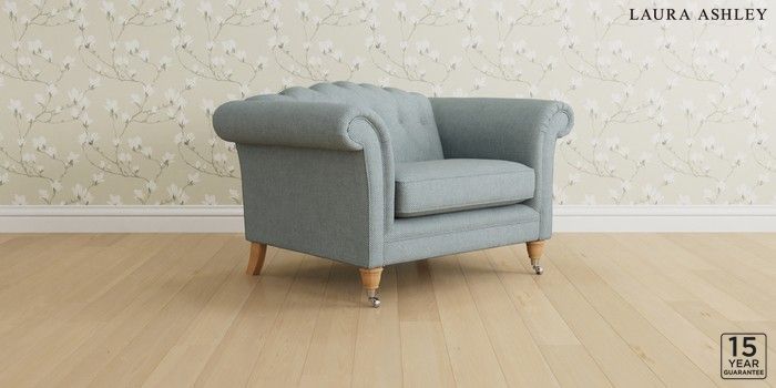 6.12.1 Buy Gloucester Button Back by Laura Ashley Snuggle Anneliese Seaspray Blue Low Chrome Castor - Light Oak from the Laura Ashley online shop Click here to use our website with more accessibility support, for example screen readers