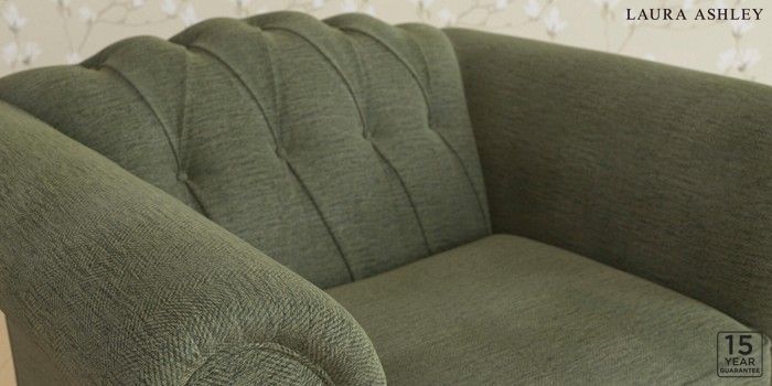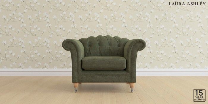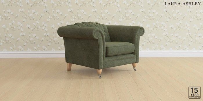 6.12.13 Buy Gloucester Button Back by Laura Ashley Armchair Edwin Chenille Hedgerow Green Low Chrome Castor - Light Oak from the Laura Ashley online shop Click here to use our website with more accessibility support, for example screen readers