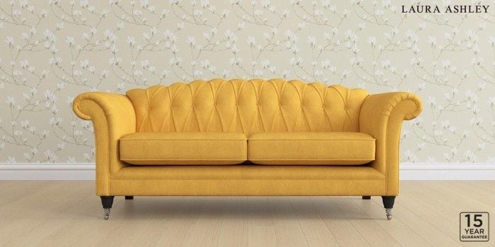 6.12.1 Buy Gloucester Button Back by Laura Ashley 3 Seater Sofa Bainton Ochre Yellow Low Chrome Castor - Black from the Laura Ashley online shop Click here to use our website with more accessibility support, for example screen readers