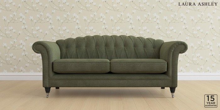 6.12.1 Buy Gloucester Button Back by Laura Ashley 3 Seater Sofa Edwin Chenille Hedgerow Green Low Chrome Castor - Black from the Laura Ashley online shop Click here to use our website with more accessibility support, for example screen readers