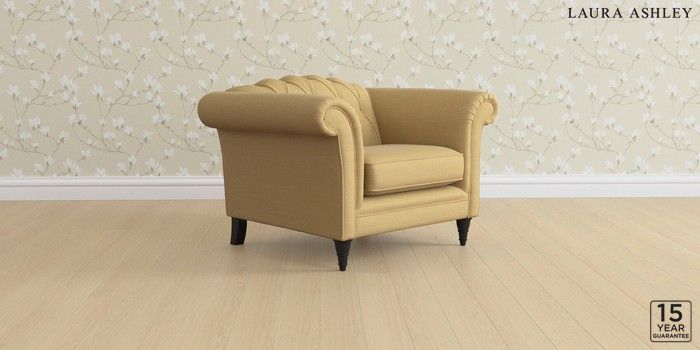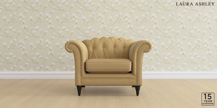 6.12.1 Buy Gloucester Button Back by Laura Ashley Armchair Kinsham Ochre Yellow Low Turned - Black from the Laura Ashley online shop Click here to use our website with more accessibility support, for example screen readers