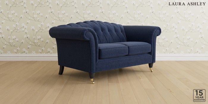 6.12.1 Buy Gloucester Button Back by Laura Ashley 2 Seater Small Sofa Nantmor Midnight Navy Low Brass Castor - Black from the Laura Ashley online shop Click here to use our website with more accessibility support, for example screen readers