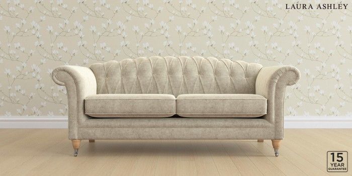 6.12.1 Buy Gloucester Button Back by Laura Ashley 3 Seater Sofa Nantmor Truffle Natural Low Chrome Castor - Light Oak from the Laura Ashley online shop Click here to use our website with more accessibility support, for example screen readers